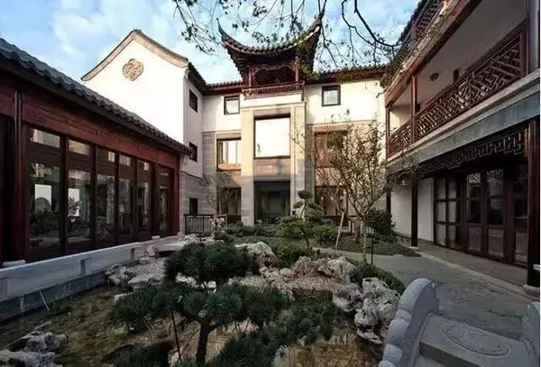 壕开发商花巨资参照拙政园的造园方式,自己造了一个苏州园林。28栋独幢别墅就隐藏在这座苏州园林里面。