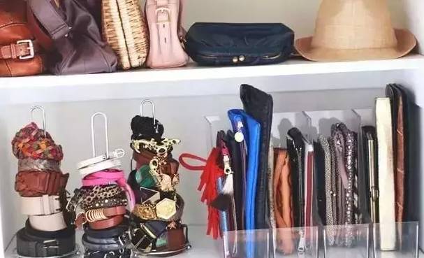 厨房纸巾架和文件夹盒都可以用来收纳腰带和手包。