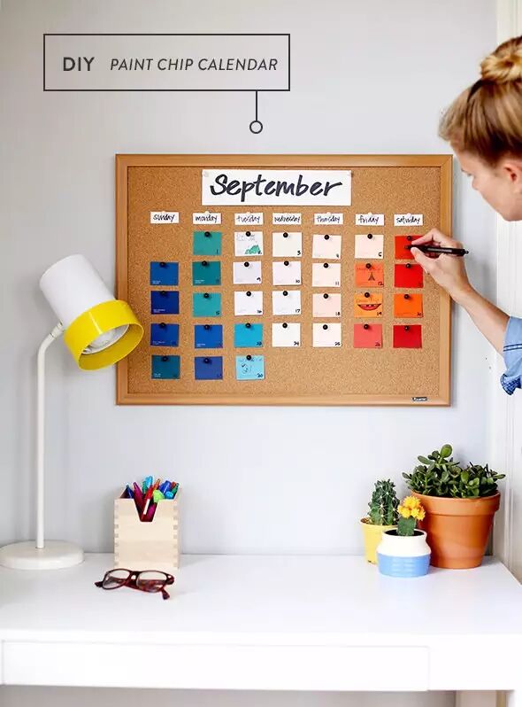 自制个鲜艳的小日历也是不错的选择,还可以用来放便签。