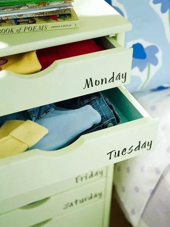 按星期几把孩子要穿的衣服放好,从小就学会搭配~