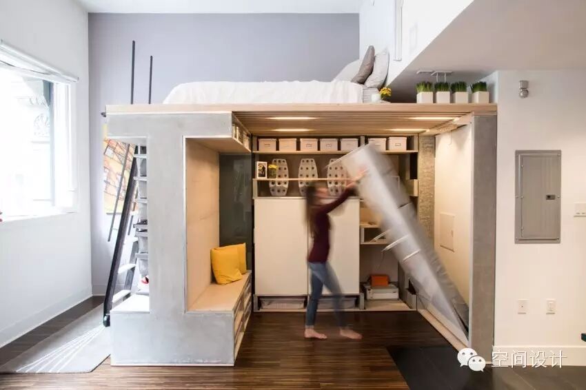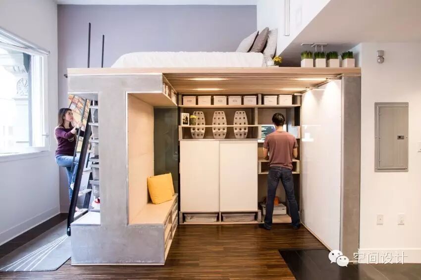 位于旧金山市中心,有一个充满活力的多功能阁楼小公寓。这个小公寓只有20平米,因面积小,客餐厅、卧床、鞋柜、衣柜等全部都是按照严格的尺寸定制的。经过木板加混凝土的智能结合,将整个公寓打造出充满活力的居住空间。
